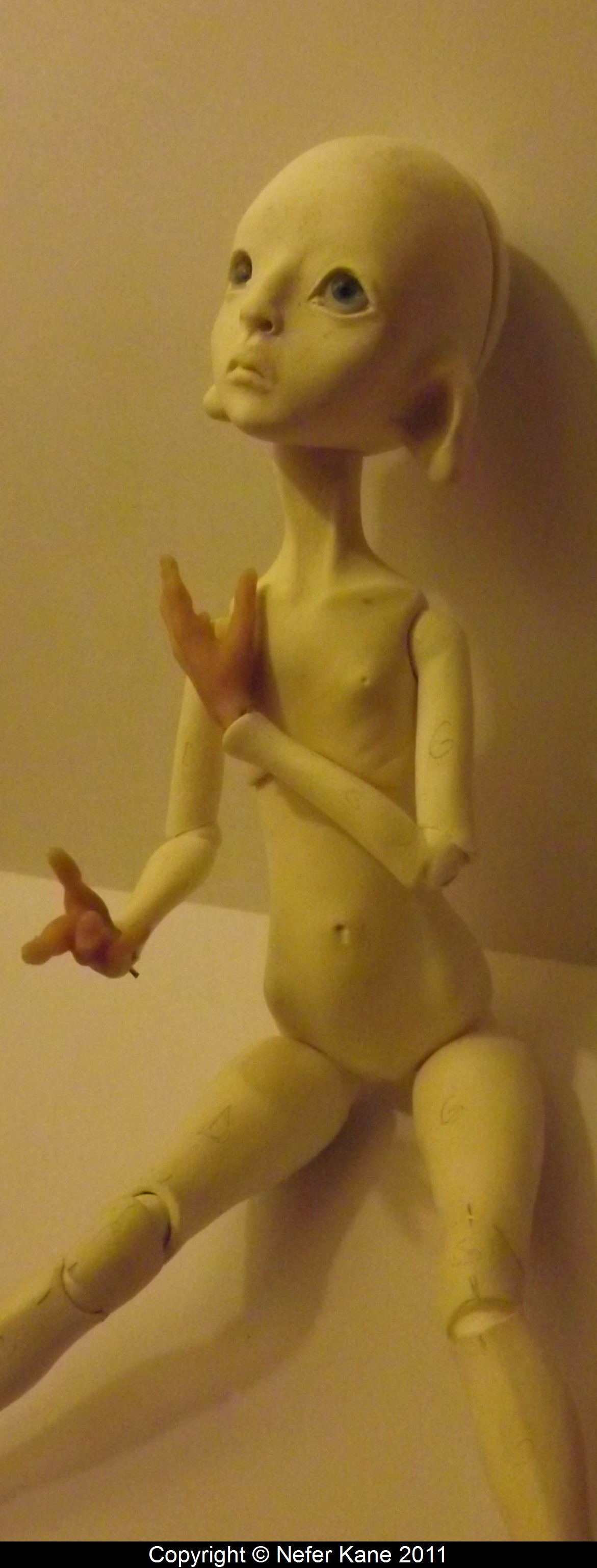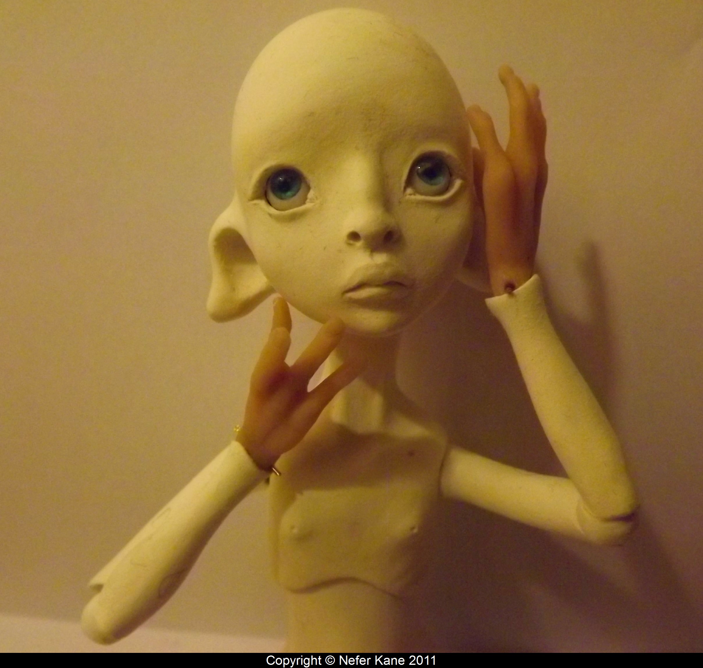 So I decided to follow my thought, for you all enjoyed this thought since I began to sculpt it… I hope you will not be disappointed in such unusual doll though… I recently had a conversation with my friend Memo about a philosophical principle which goes like this : ” The watcher modifies the action only by his presence and look.” Therefore, I wouldn’t have been that inspired and brave to make her so without you all enjoying her since first day and watching me making her. I can, then, say that you gave me freedom and it has been a real pleasure to make her with you. I can also say it is also thank to you that she looks how she does. THANK YOU.