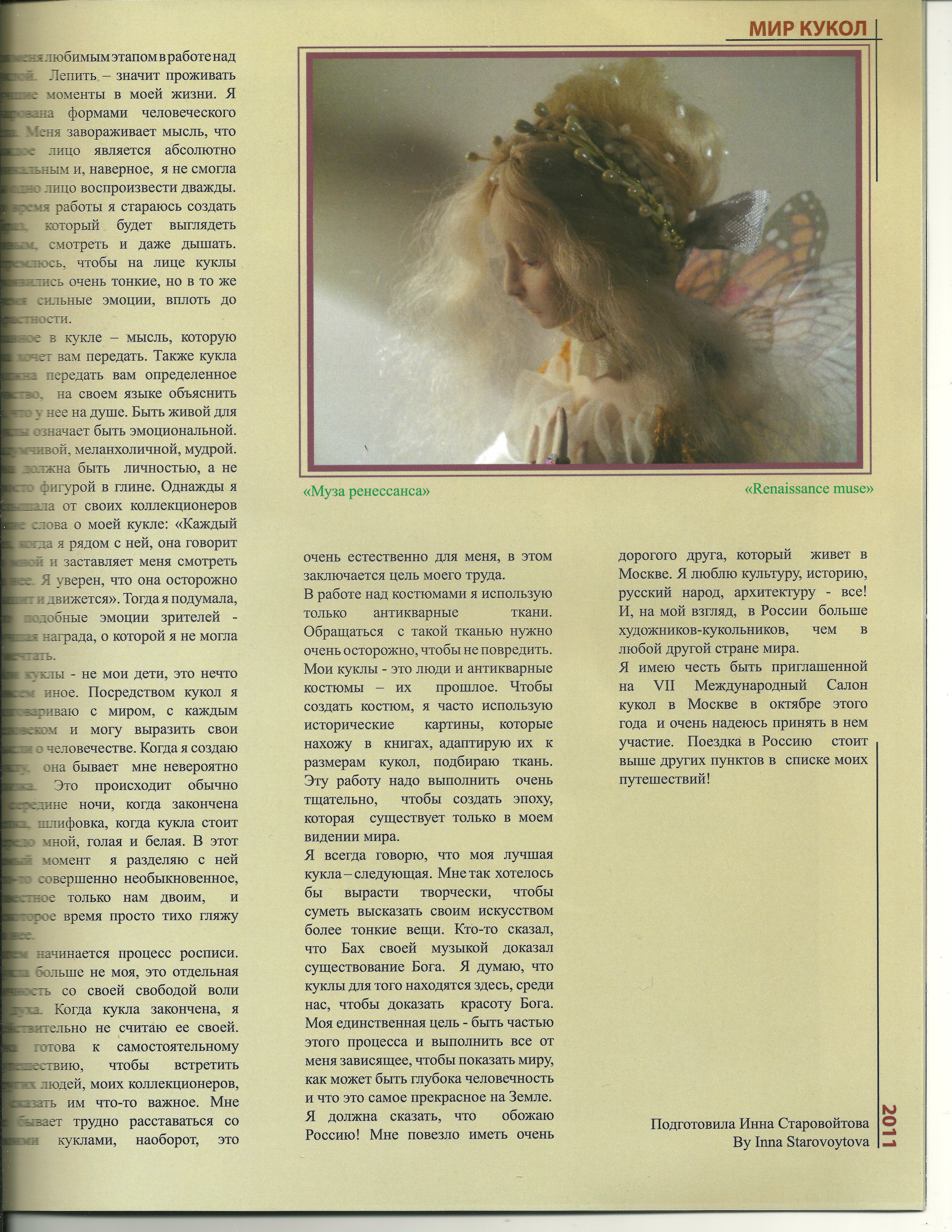 I am absolutely stunned and amazed at what I am seeing. I have been doing dolls for 30 years and in of the classed I taken, the shows attended, I have never ever seen any dolls so so so deserving of great excitement and love. I too wish I could read Russian-I am sure I’d agree w/ the article.