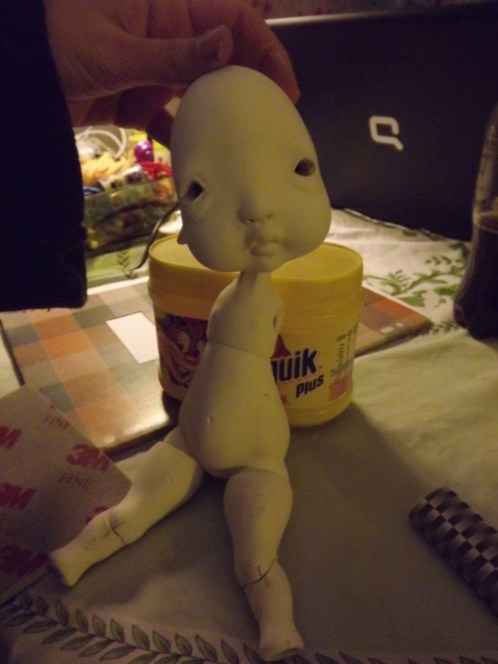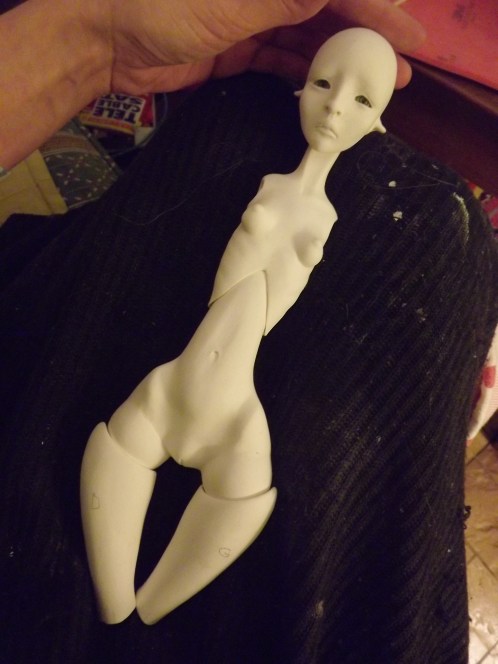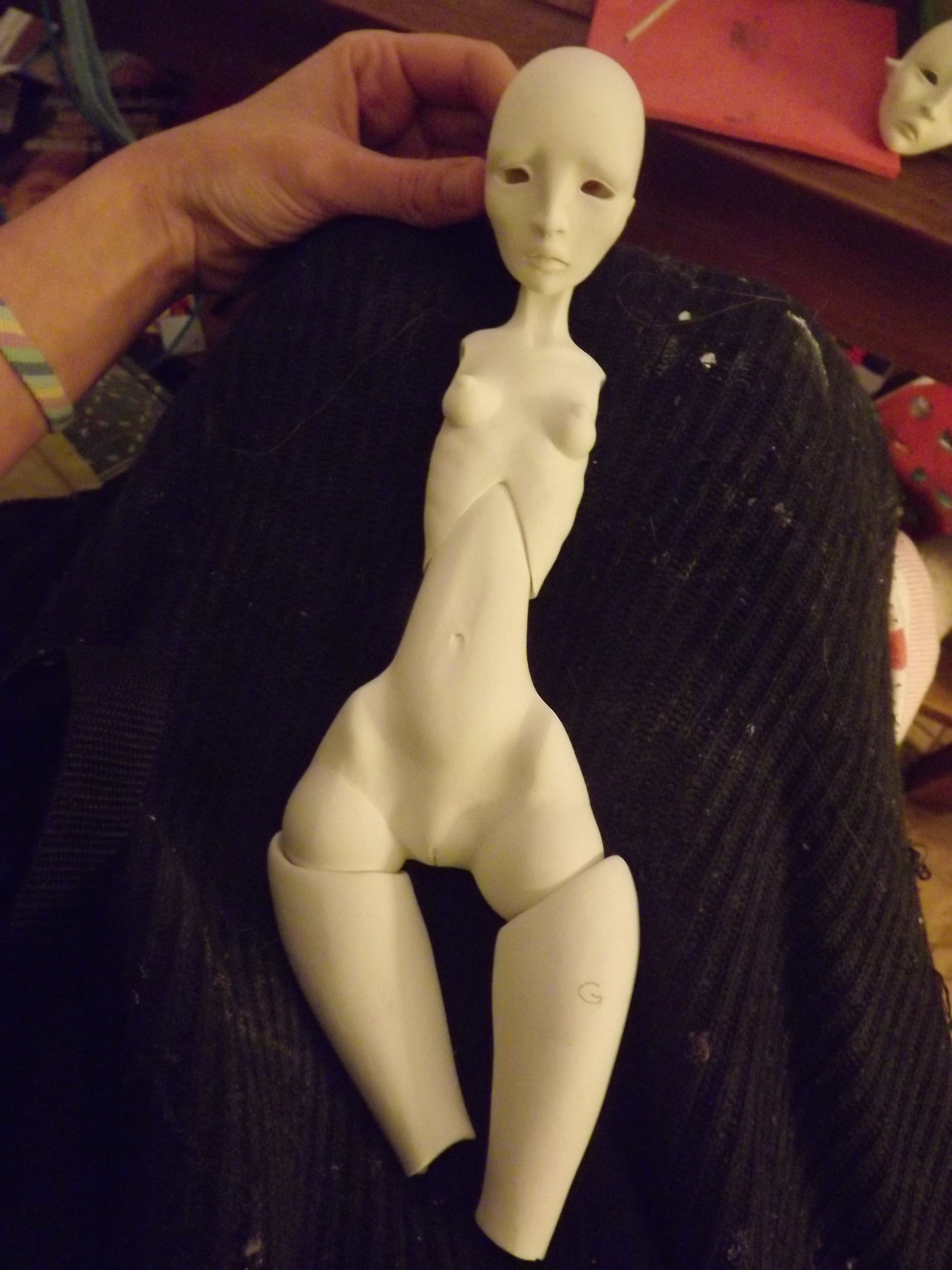 So, my first prototype is Aranud. It is named after my son Arnaud, and is simply Aleah but older. I played imagining how she would be older and following the lines of her face and body, using the same joints, I sculpted her. There is a WIP photo of her; in the meantime her body has been completed and only the hands and feet are to be made :