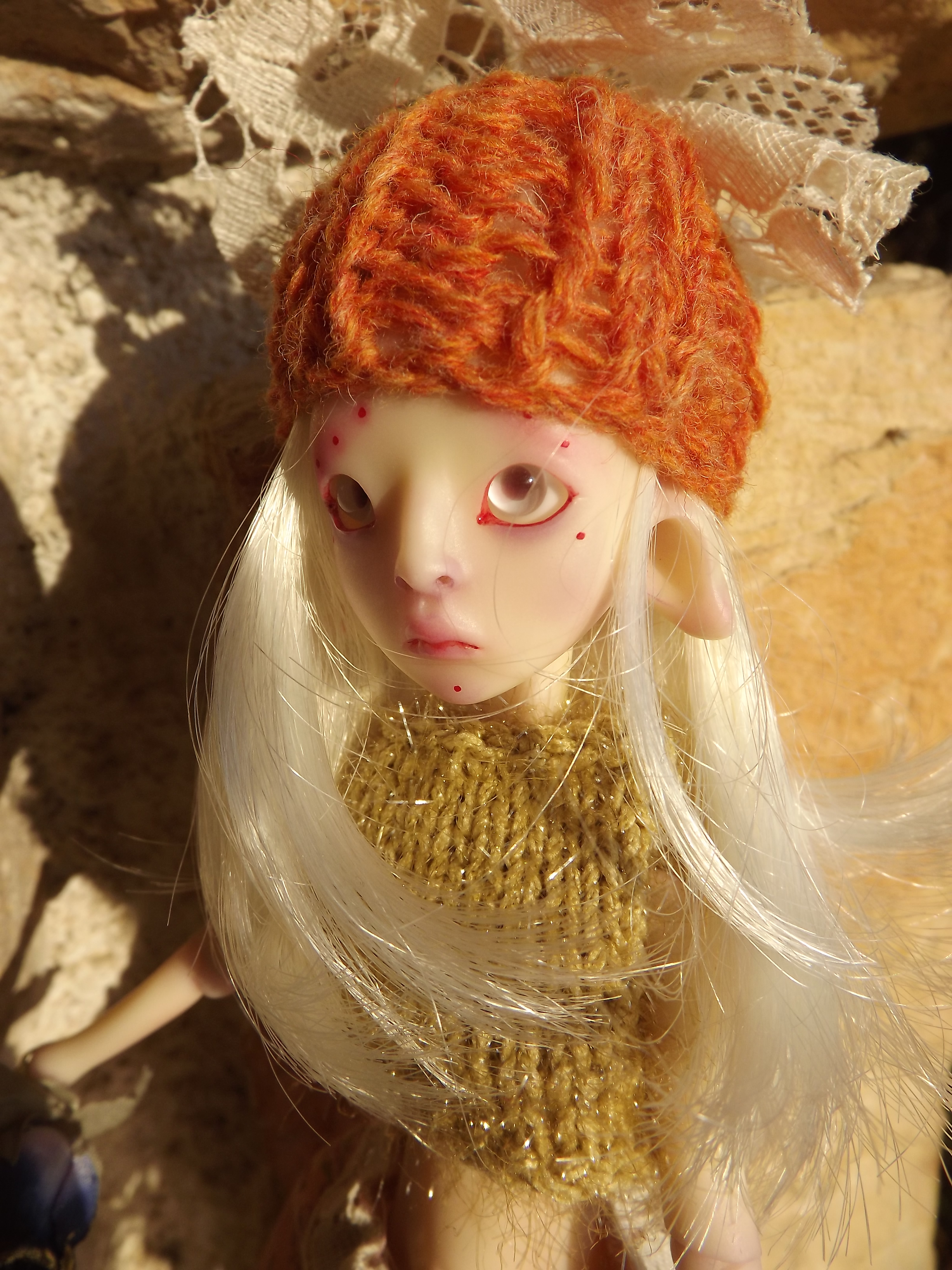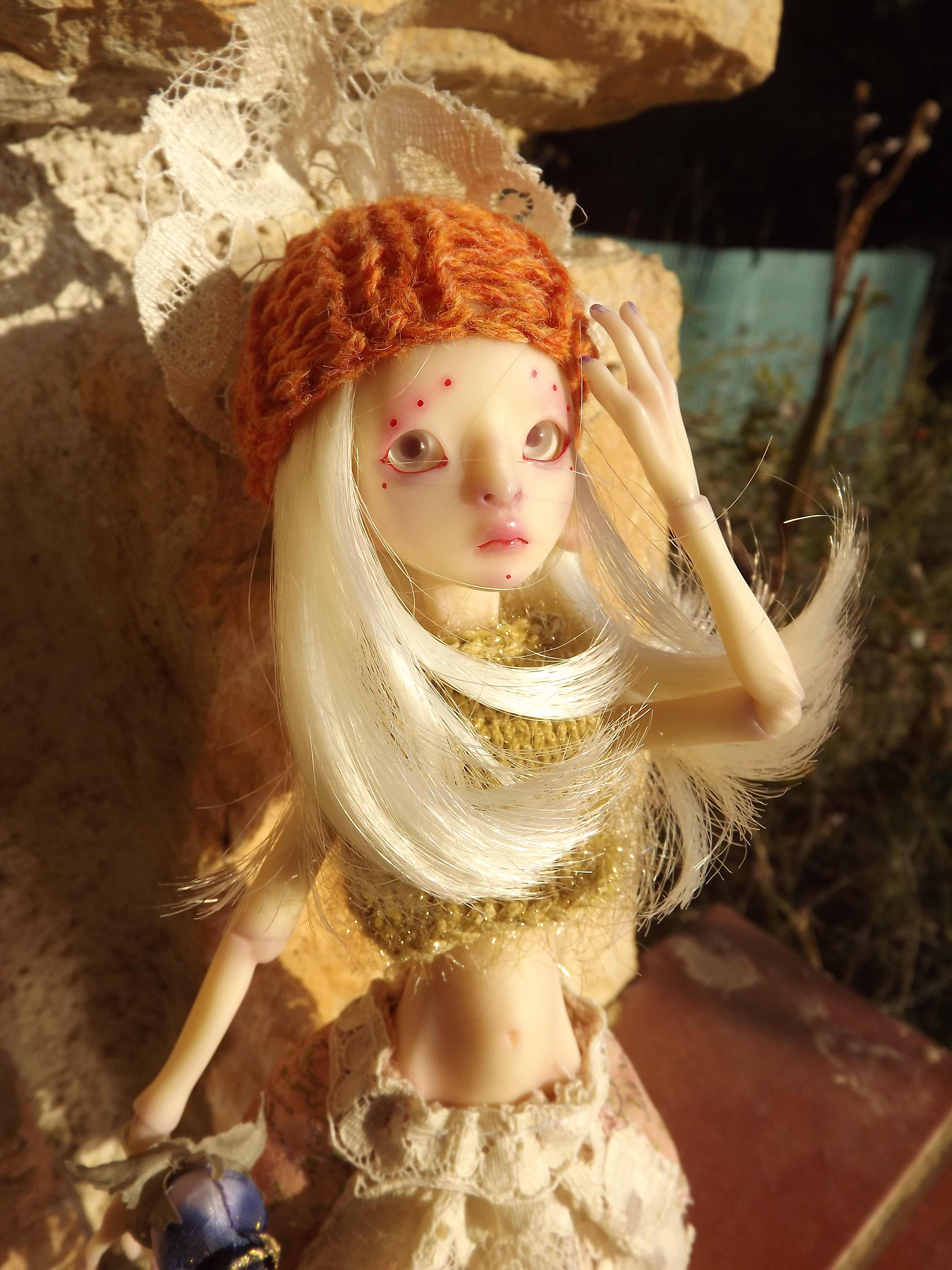 Now, and there will be another preorder for her very soon too; here is Miss Humpty Dumpty. When I was a child, I once saw a cartoon of “Merry Melodies” with the kewpies in. I am fond of the Kewpies. They are in my opinion the most lovable little ones in the world. In this very Merry Melodies, at a moment ( and God knows why) Humpty Dumpty sang a song. Then, in my young mind and FOR YEARS I thought that Humpty Dumpty had the same body than the Kewpies. I mixed all in my brain and realized not so long ago that Humpty Dumpty is only an egg with limbs. That disappointed me cause in fact, he was much better looking in my memory. So, Inspired by the delightful Kewpies and an old Merry Melodies cartoon, here is how I always saw Humpty Dumpty. She is a YOSD and I hope to propose her preorder in different color of resin :