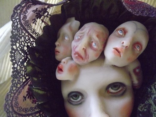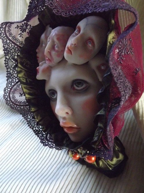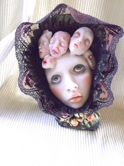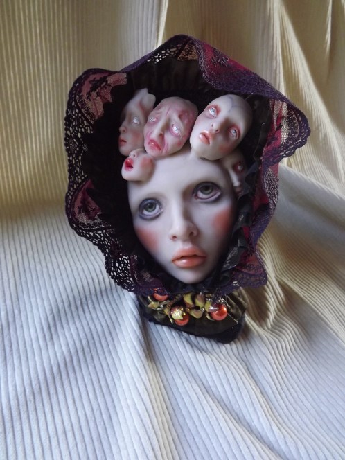 I am absolutely incapable to sculpt something ” sensuous” or “erotic.” I don’t really have any notion of what it is therefore it finds no place in my work. BUT, I decided to make a bust which relates the dilemma we can suffer of because of our sins done or to be done. This bust has 6 heads ( yes I know…. I couldn’t behold myself and I guess you get used to my weirdness… ^^)