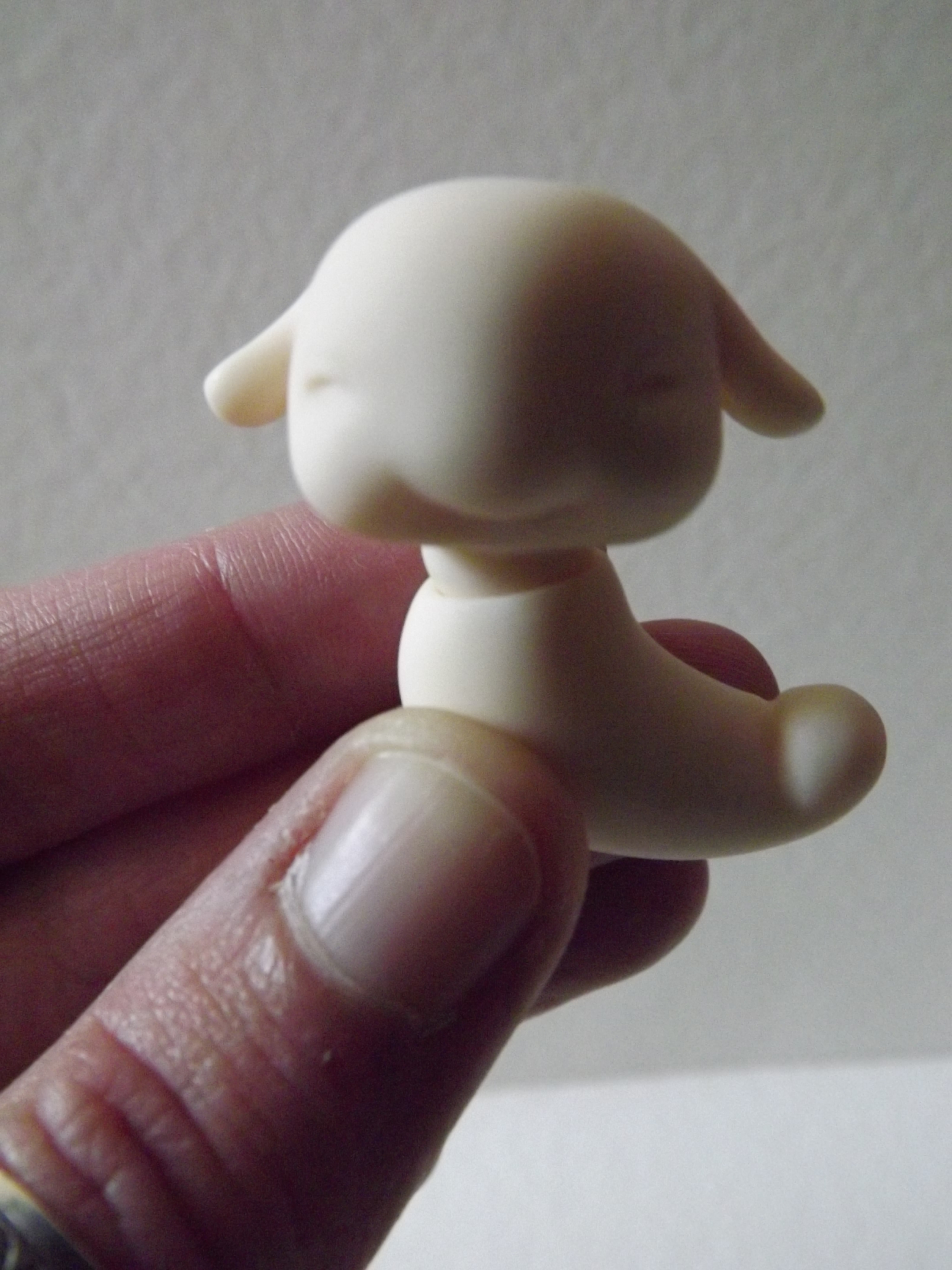 I must say that Humpty Dumpty and her little pet friend Mr Sluggy Doggie are…. Beyond all my expectations. The samples are simply PERFECT. She still have that attitude I worked on a lot, she is heavy and very posable, her head even if big moves perfectly on its joint. That was a matter of worries for me as I know that Paperclay is extremely light when dry, and I was fearing a problem for such big head to be in heavy resin… But not at all! what a relief and a delight to see that resin fulfills all my desires and even more for that peculiar doll!