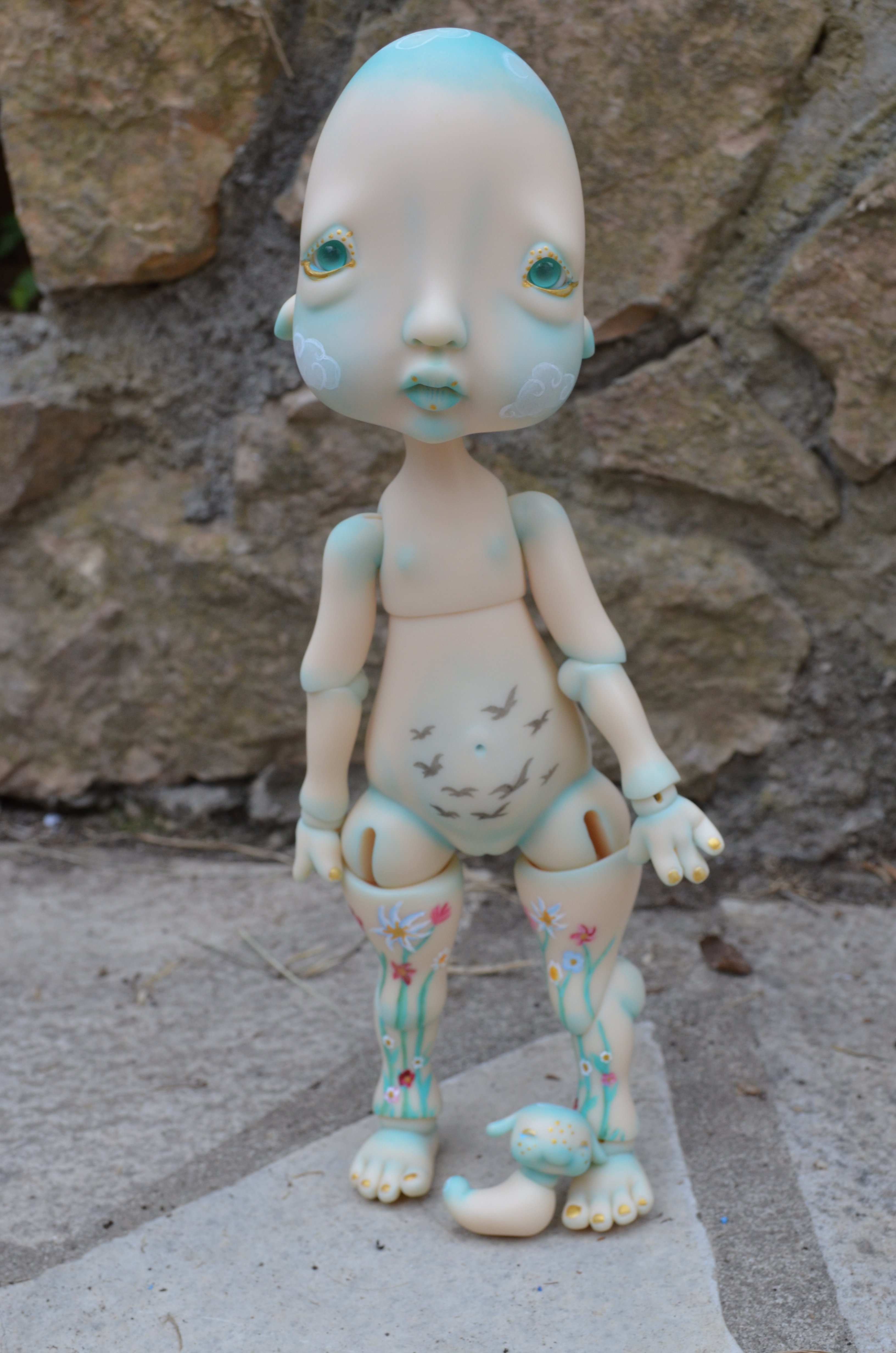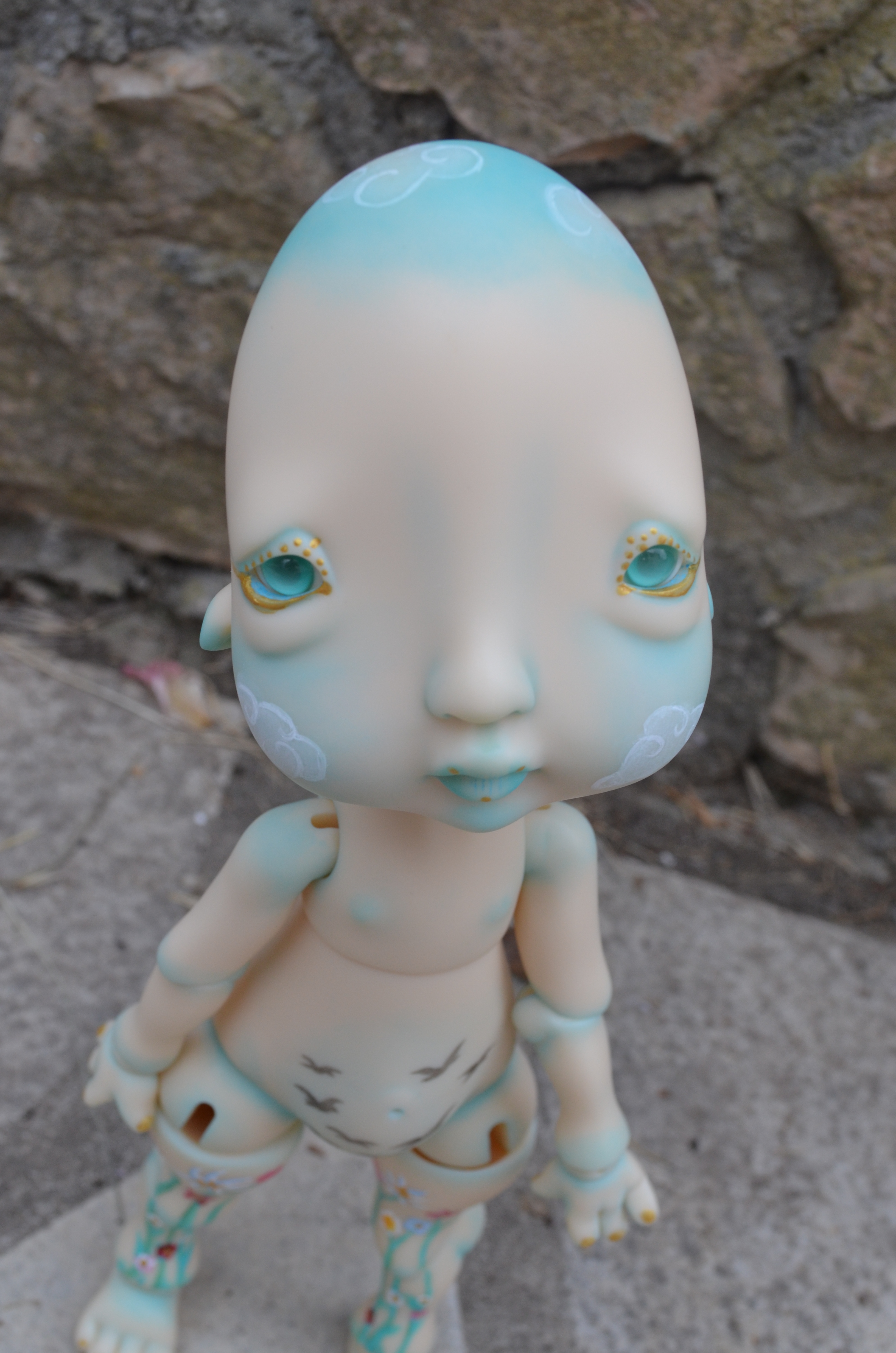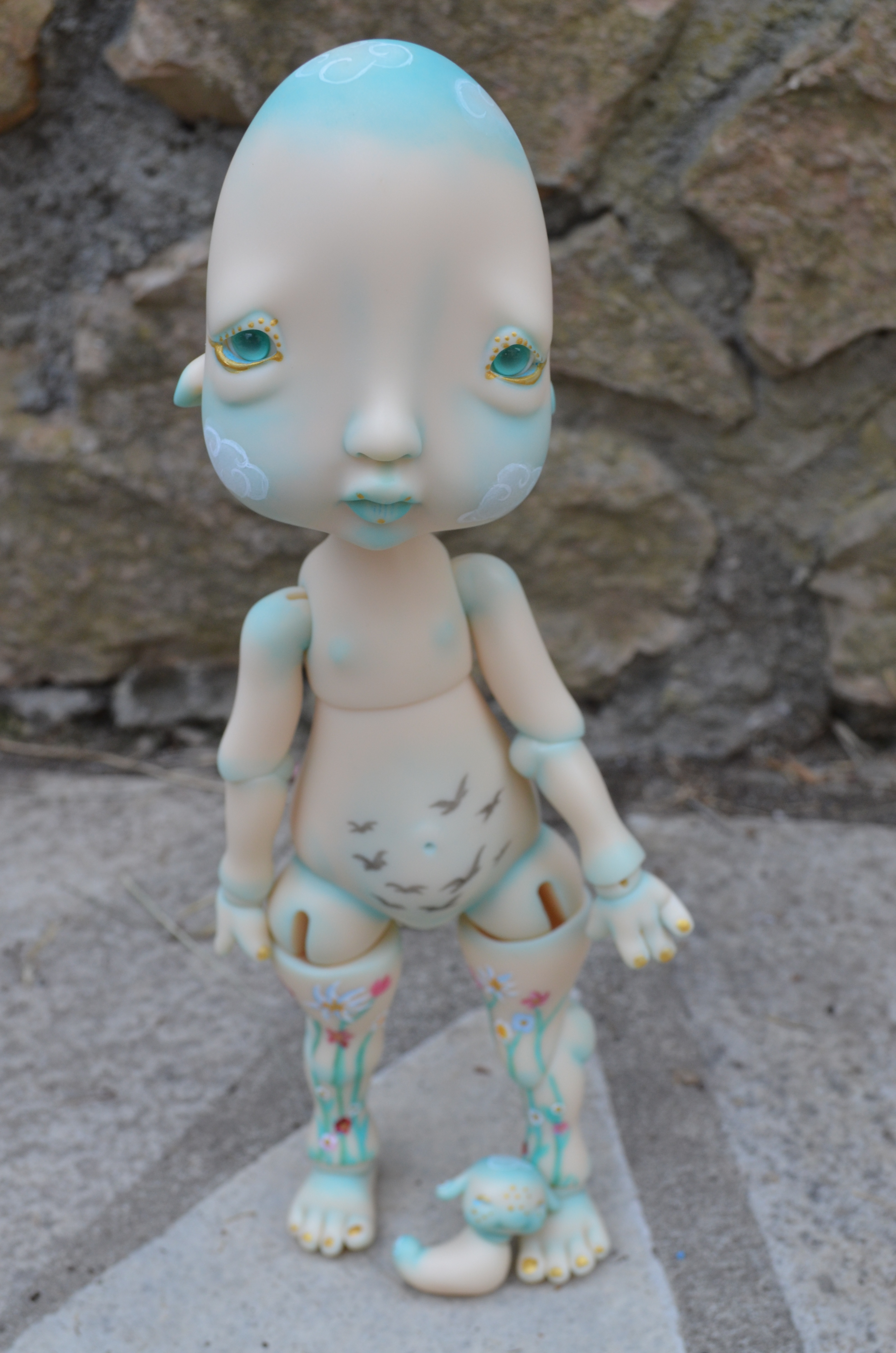 For Humpty, every doll I painted is DIFFERENT. Because if I sculpt “artist dolls” ( what else? am not a plumber as everyone knows LOL) I think that commissioning my painting, it is my duty to make every of them different. There will be about 12 Birdies in the world and a little more of Atomic Candies; but every of them have little different details for it is the least I can do.