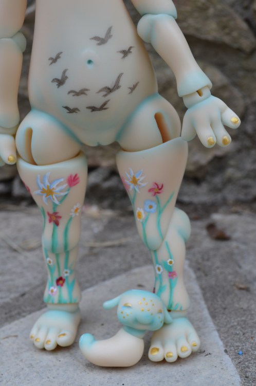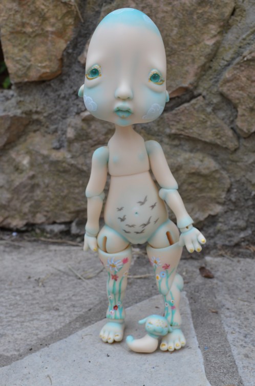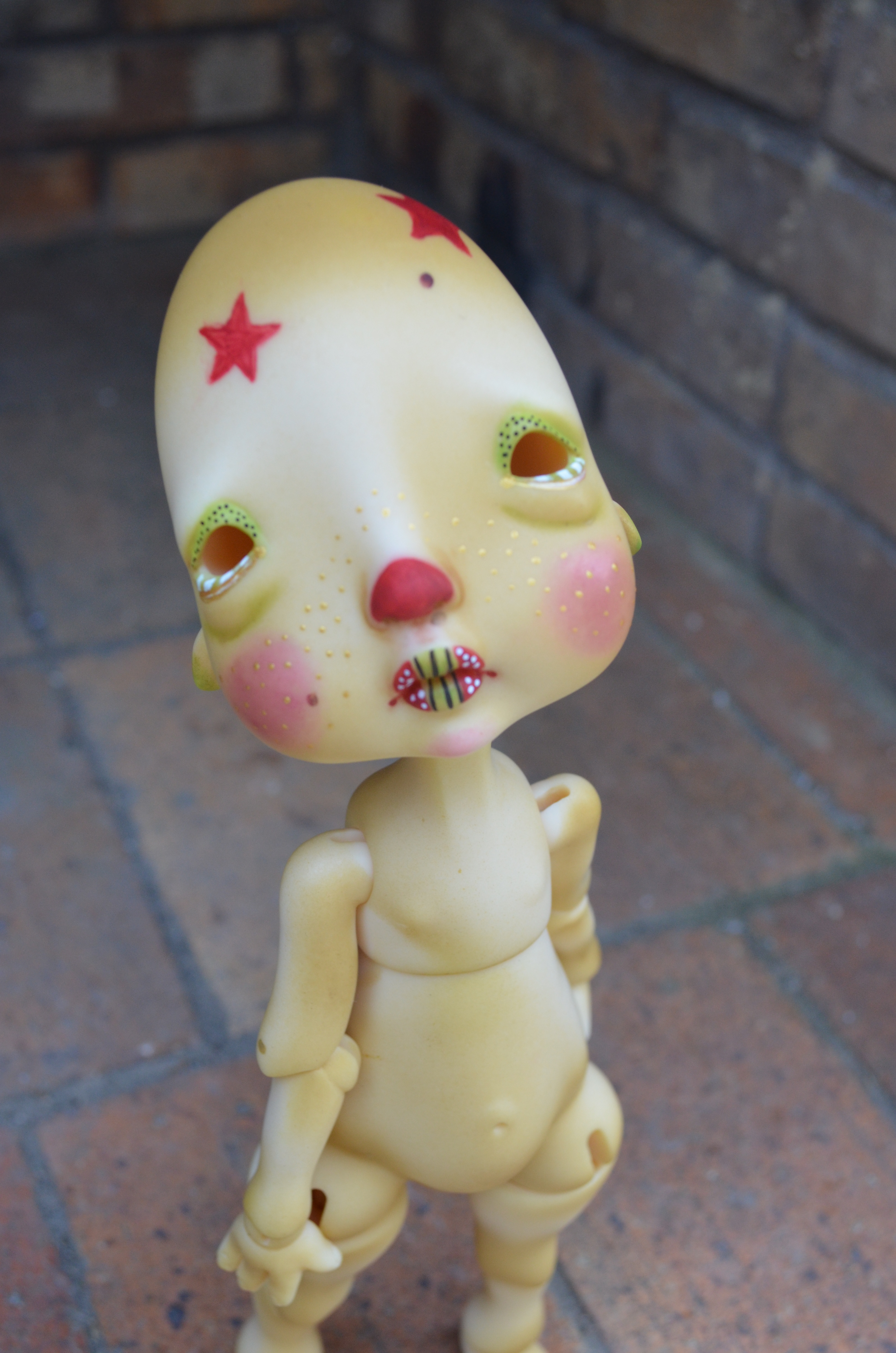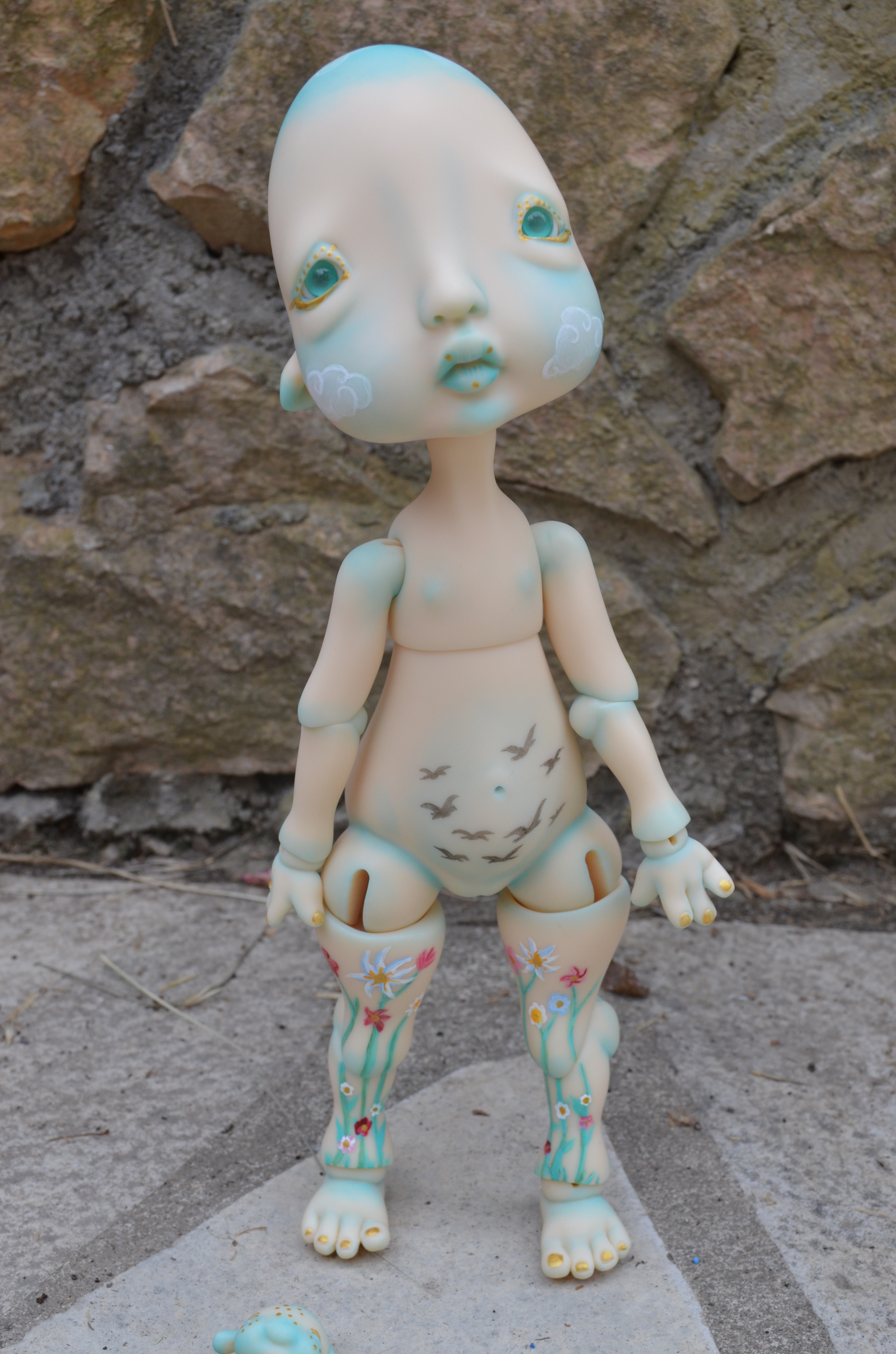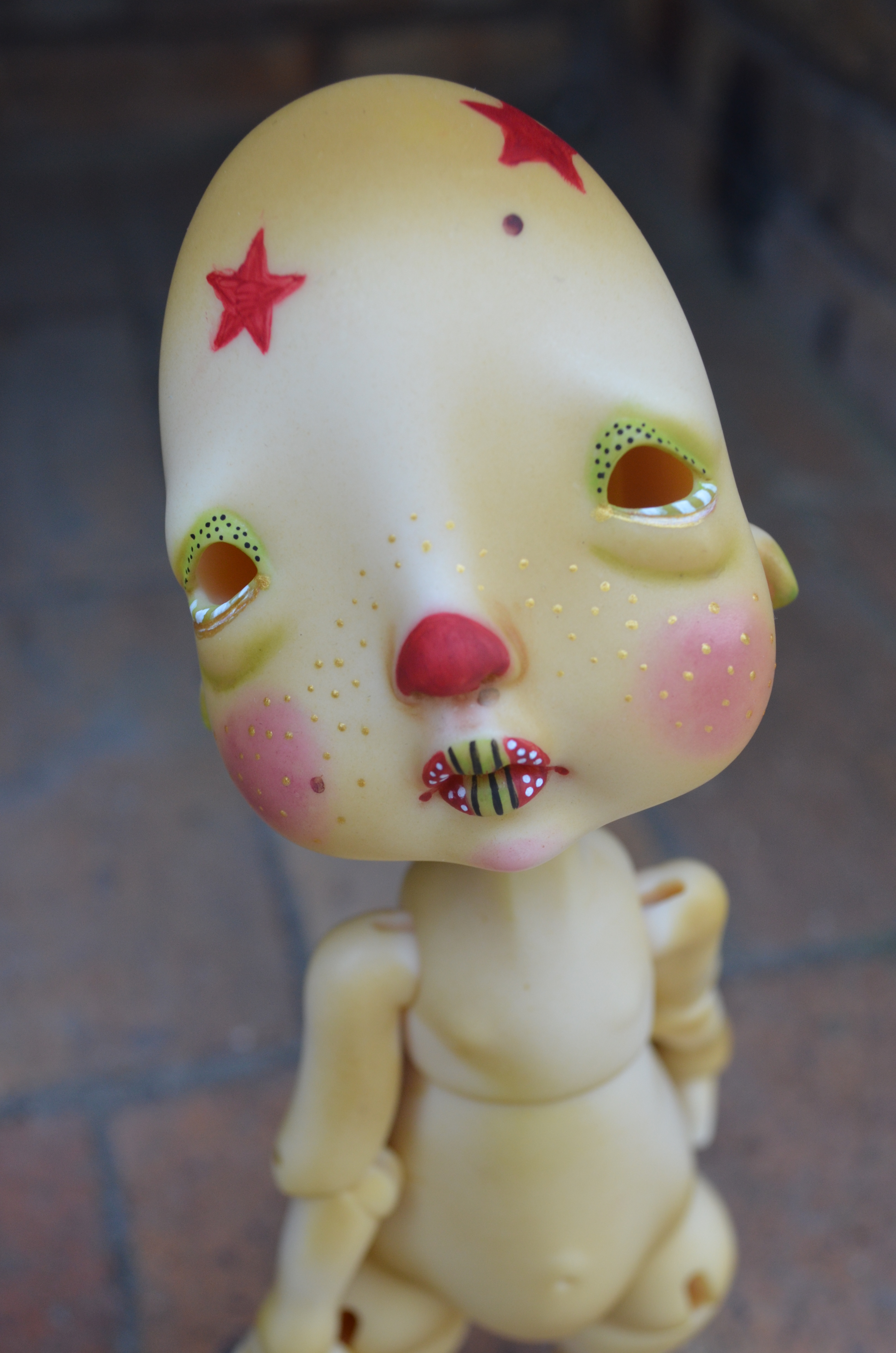 For Humpty, every doll I painted is DIFFERENT. Because if I sculpt “artist dolls” ( what else? am not a plumber as everyone knows LOL) I think that commissioning my painting, it is my duty to make every of them different. There will be about 12 Birdies in the world and a little more of Atomic Candies; but every of them have little different details for it is the least I can do.