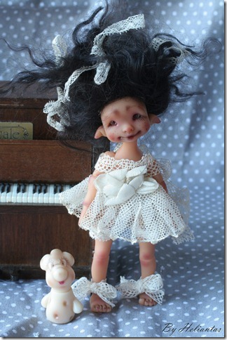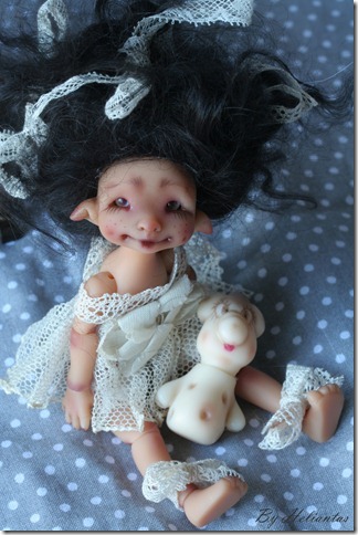 As many of you know, my dolls are very often painted by the artist Heliantas, my friend whom makes awesome paintings on them. This collaboration which is really for me a bliss, will go a little farer very soon; as Heliantas very kindly
