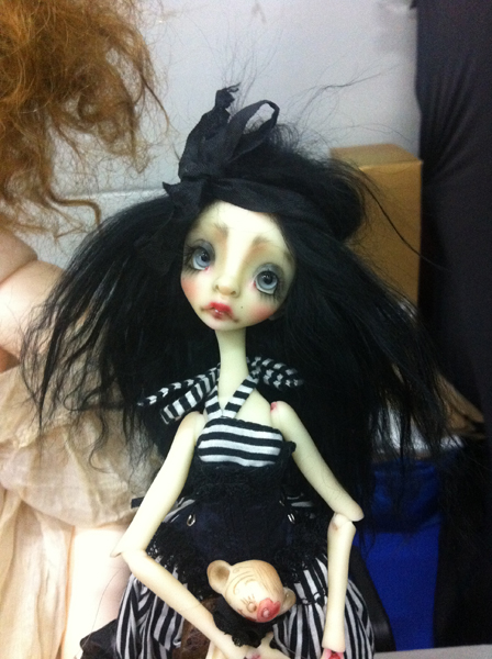 J’aurais aimer te rencontrer! Mais j’ai bien papotté avec Laure. (qui est repartie avec une petite poissonneuse d’ailleurs XD), et j’ai bien tripatouillé Iracebeth dans tous les sens. Ces petites articulations coeur, ces grands yeux expressifs et ces mains délicates ne me sont pas insensibles du tout!!! <3.