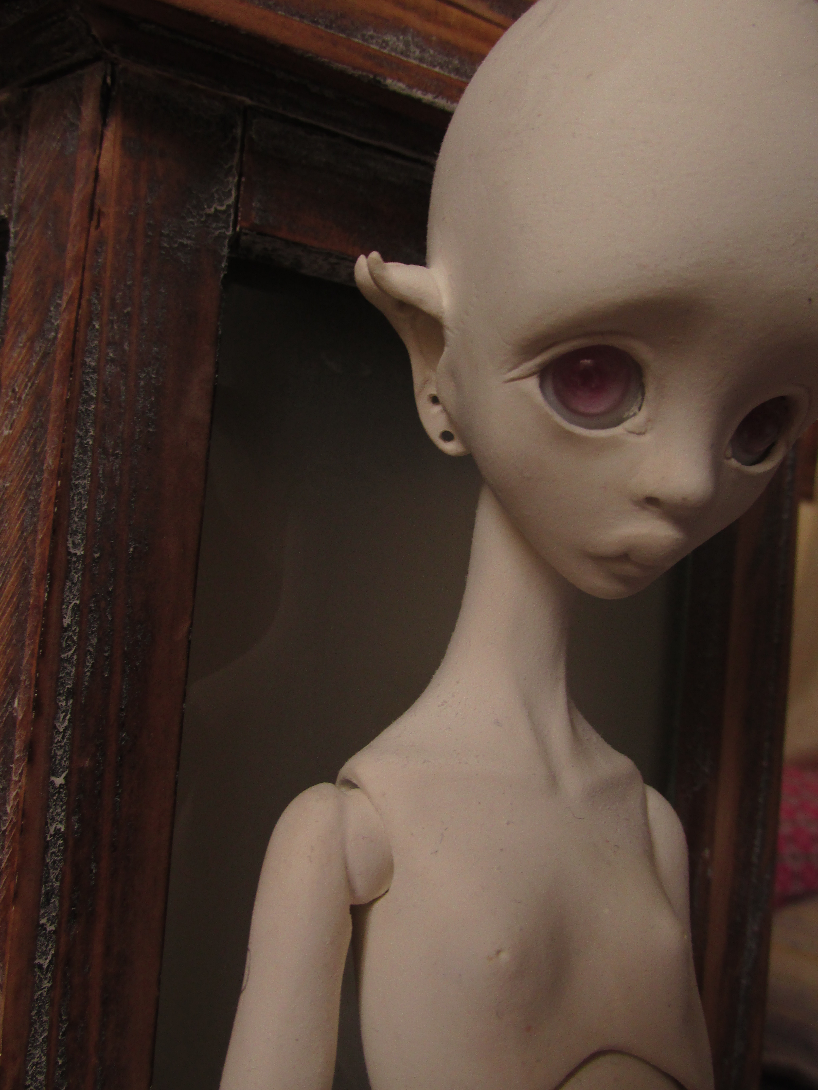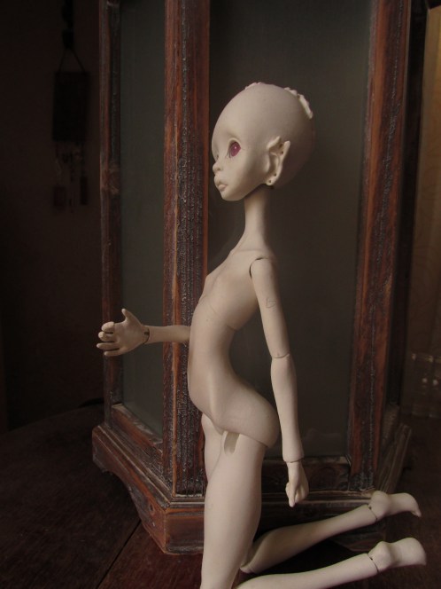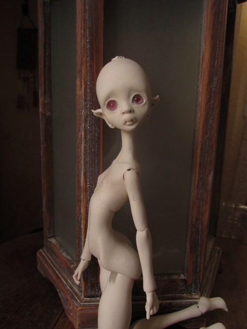 She is sublime, unique, stunning. To see her all strung together and standing in her glory on those high heels is a totally delicious experience to me. And of course, I must have her: because of my reasons, my story, but most importantly – because she is the very essence of what I seek in the doll world these days. She is alive, captured in clay and resin, and so perfect that adding any clothes or wig can only take away… She is a dream you made come true.