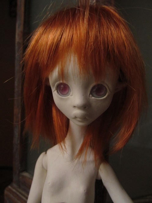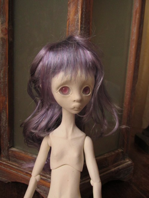lose the wig (as much as I LOVE Grace’s wigs, she does not need a wig). She is an odd little one! like a horrific car crash that you can’t take your eyes off of. She is so odd that she is mystically unique. She has such innocense about her. I see a beauty in her because of her oddity. She is exotic and I am not surprised that Grace would wish to sell her. I can not imagine her with clothing or hair because that “fluff” is just “fluff”. She is who she is as she is…