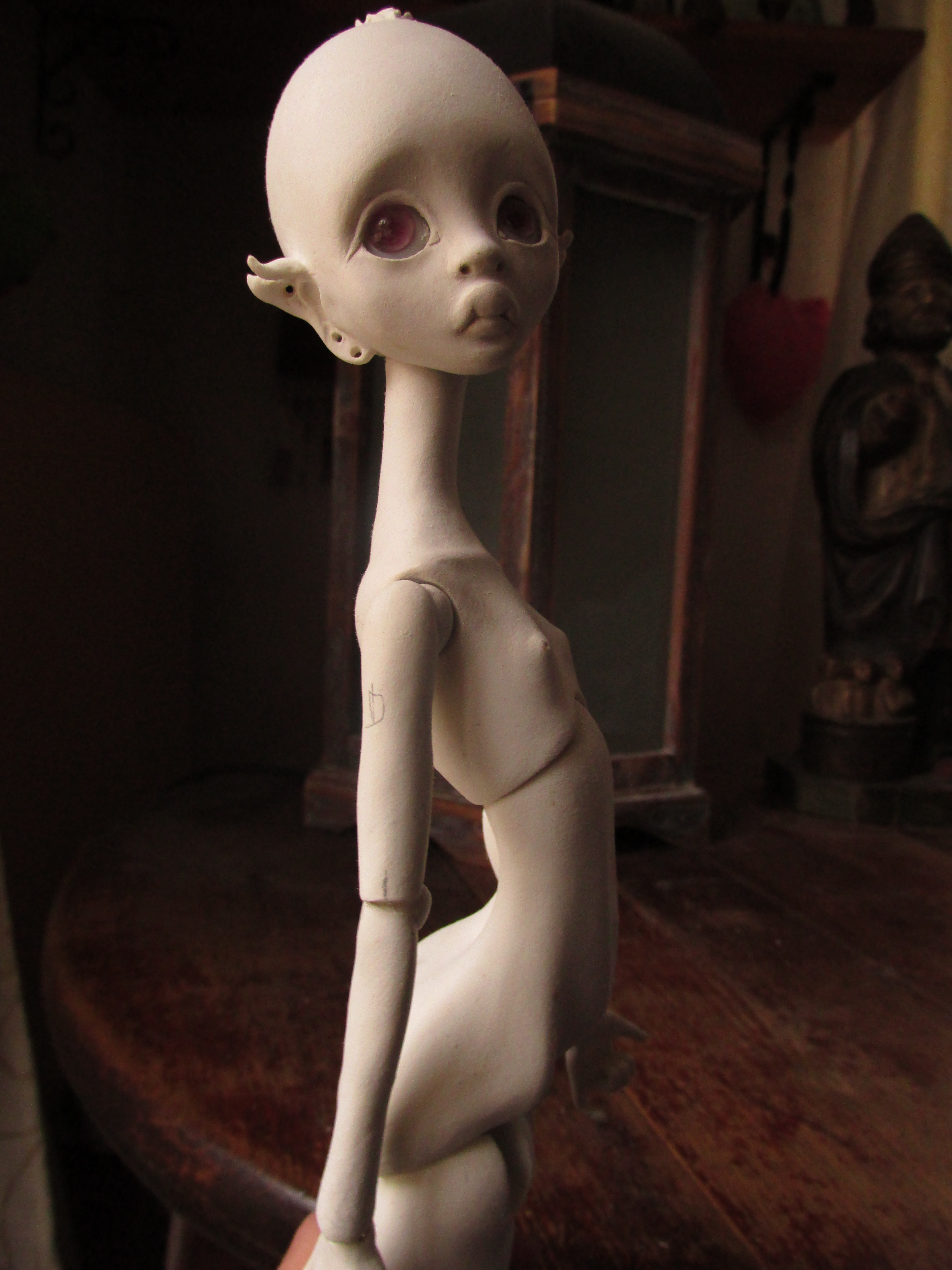 She is a slim MSD, about 38cm tall. She is thin and muscular. This is the most detailed prototype I’ve ever done. Her back is very arched to increase her grace and creature attitude.